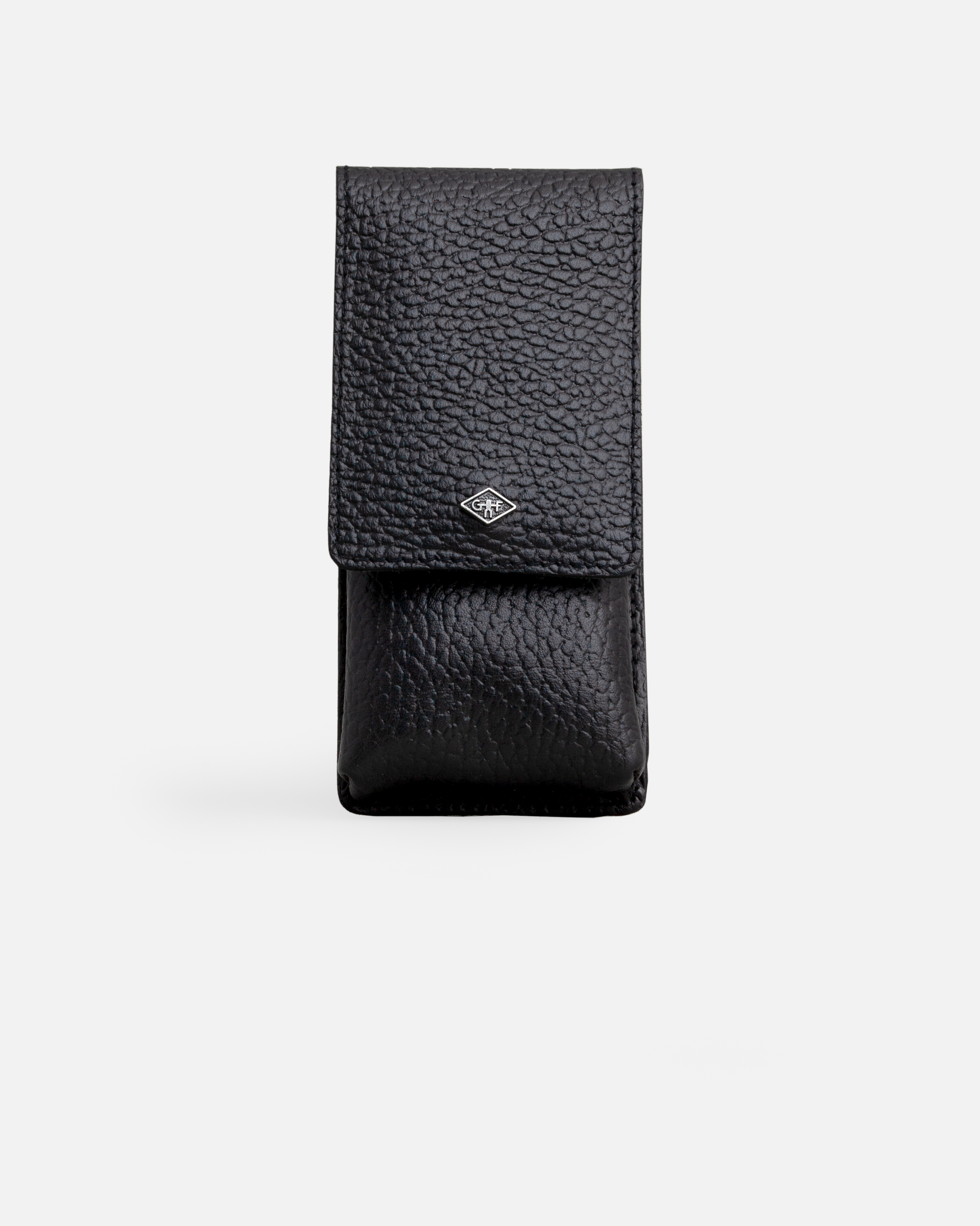Das hochwertige Etui besteht aus echtem, durchgefärbtes Vollleder (kein geprägter Kunststoff). Auf Kleber haben wir komplett verzichtet, alle Teile des Etuis sind stabil genäht. Das Etui färbt nicht ab und kann auch in Nassräumen verwendet werden. Die von uns ausgesuchte Materialkombination sorgt für einen strapazierfähigen und langlebigen Einsatz.