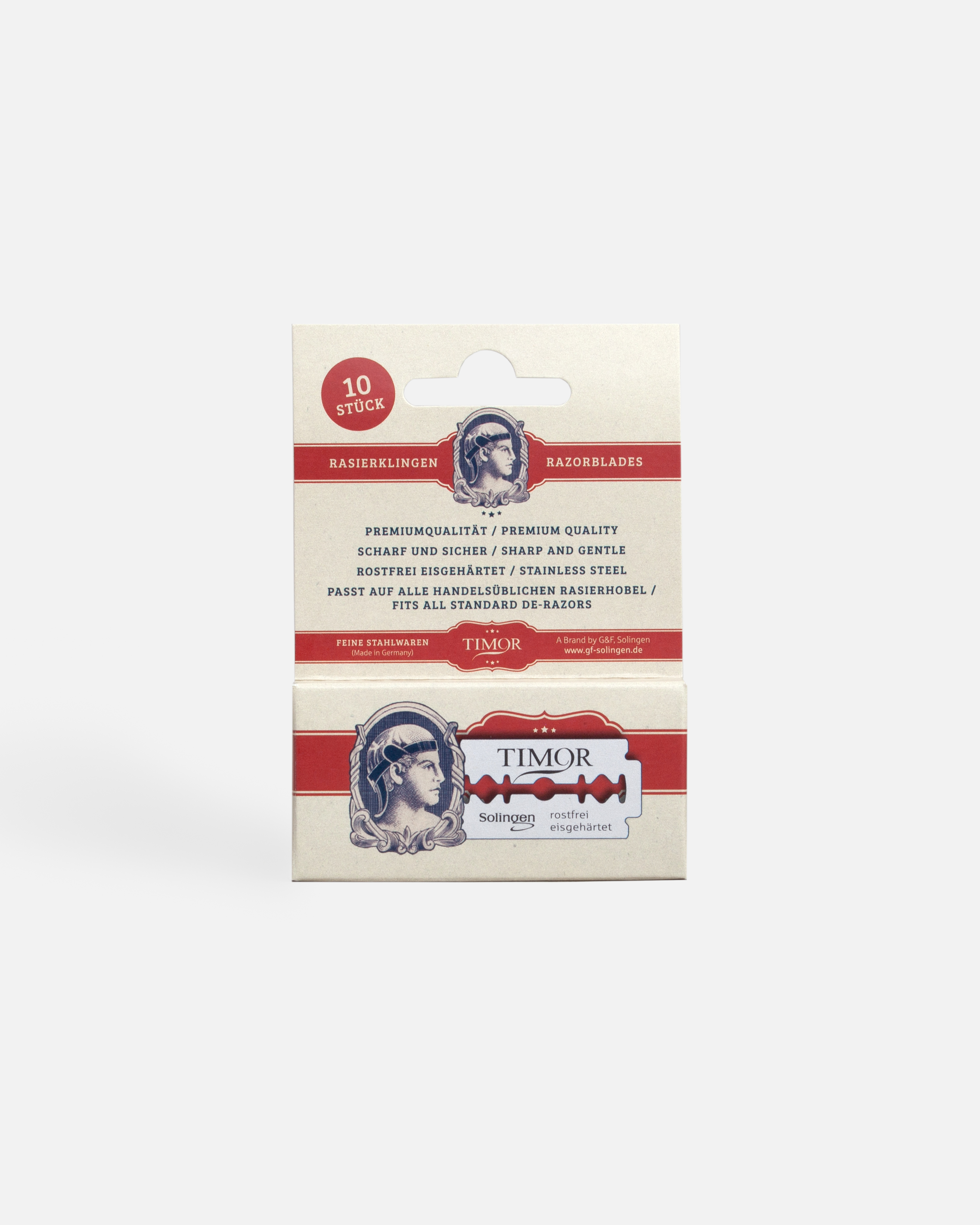 Der massive Griff (kein Hohlgriff) sorgt für ein höheres Gewicht, um eine angenehme Rasur zu ermöglichen. Sie müssen auch bei unserem Einstiegsmodell Gentle Timor® keinen Druck beim Rasieren auf Ihrer Haut ausüben, was Reizungen vermeidet Schon mit einem Zug rasieren Sie sehr hautschonend und gründlich im Vergleich zu Mehrklingensystemen. Timor® Rasierklingen
