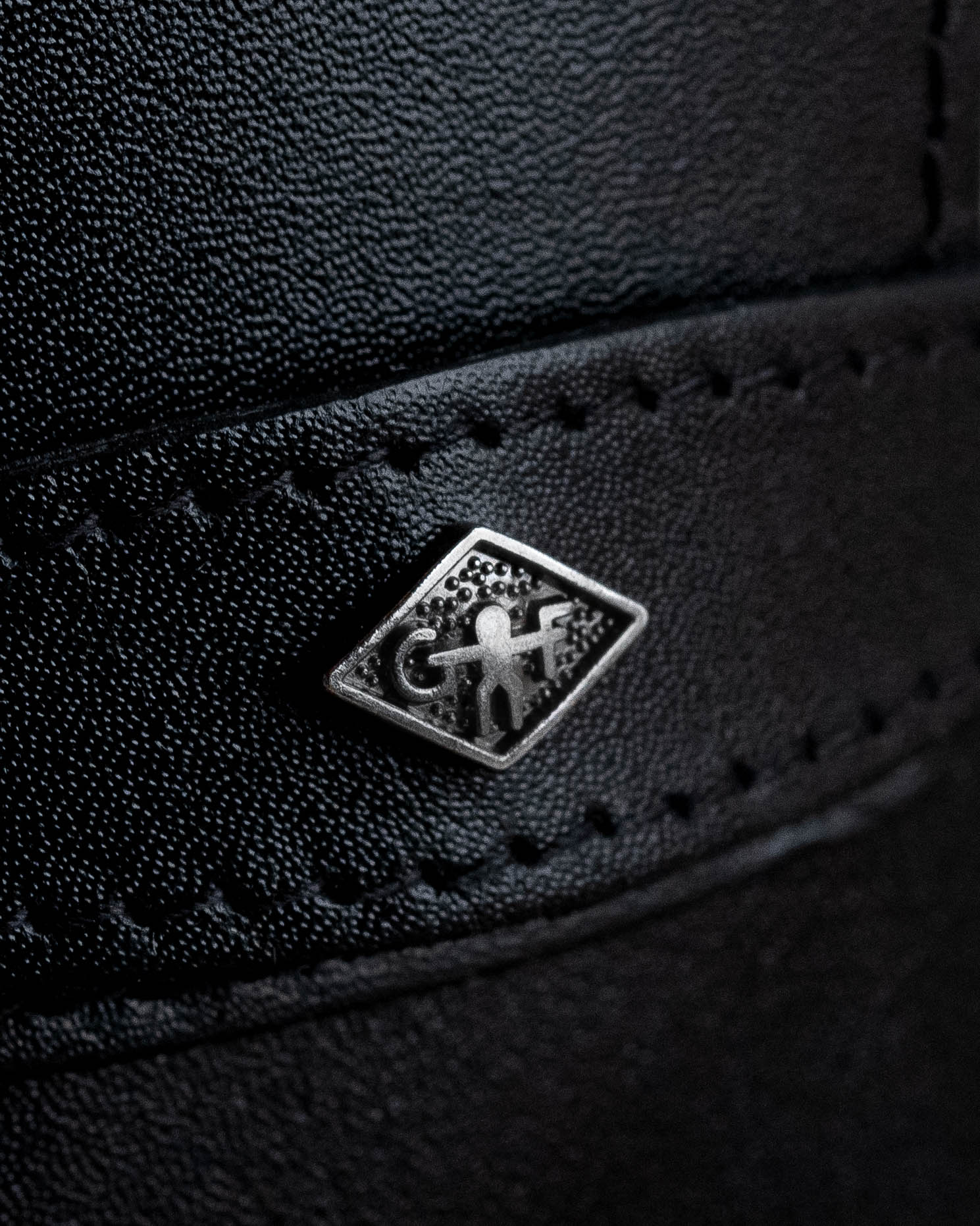 G&F Timor® Hochwertiges, 4-teiliges Manikürset in glattem, schwarzen Leder mit Riegelverschluß und schwarzem Samt-Innenfutter. Inhalt: Kombinierte Haut- und Nagelschere, Pinzette, Nagelknipser und Feile.