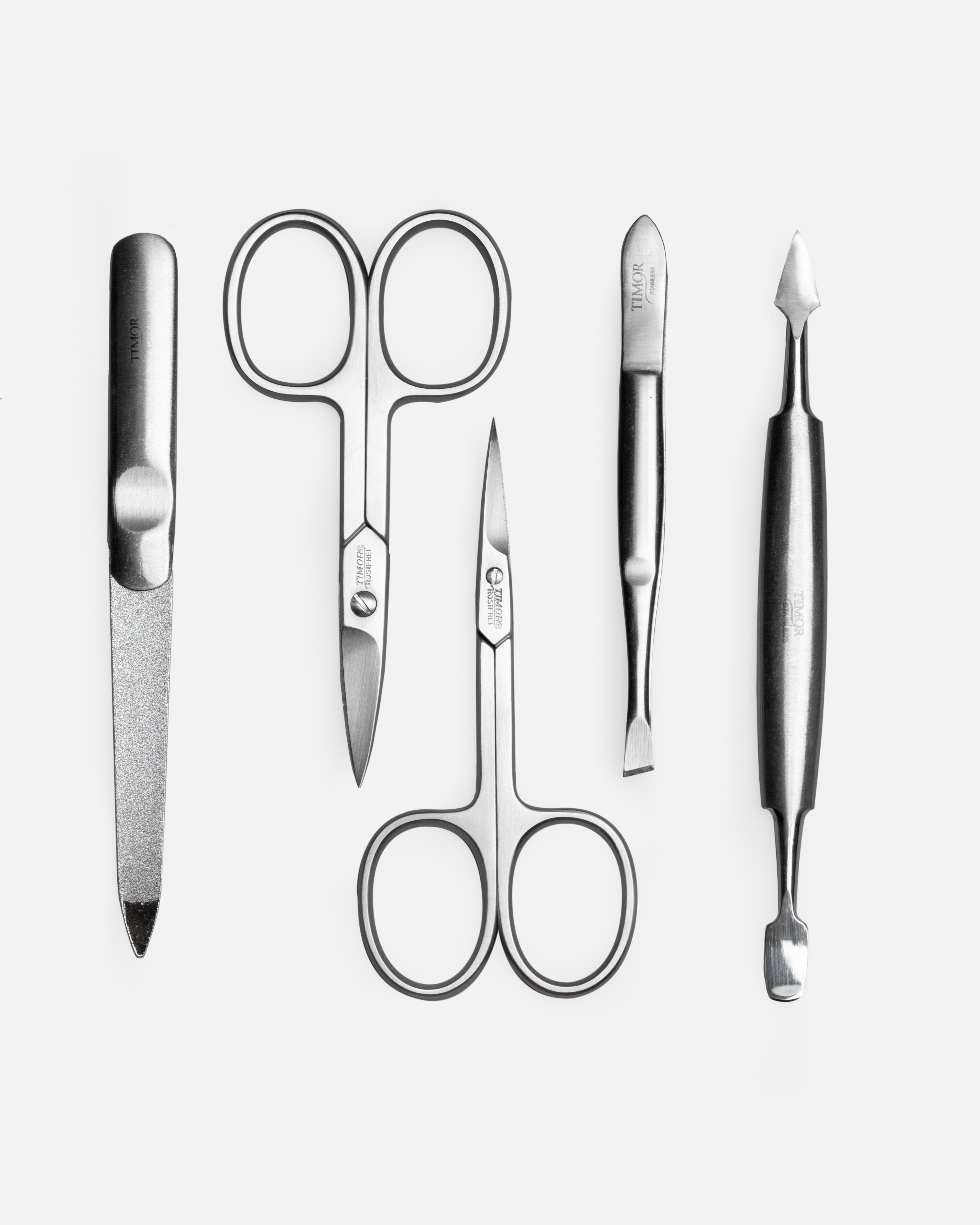 | Inhalt: | Hautschere rostfrei, 95 mm, Nagelschere rostfrei, 95 mm, Pinzette, rostfrei, 90 mm Manikürinstrument, rostfrei, 125 mm Safirnagelfeile, 115 mm |