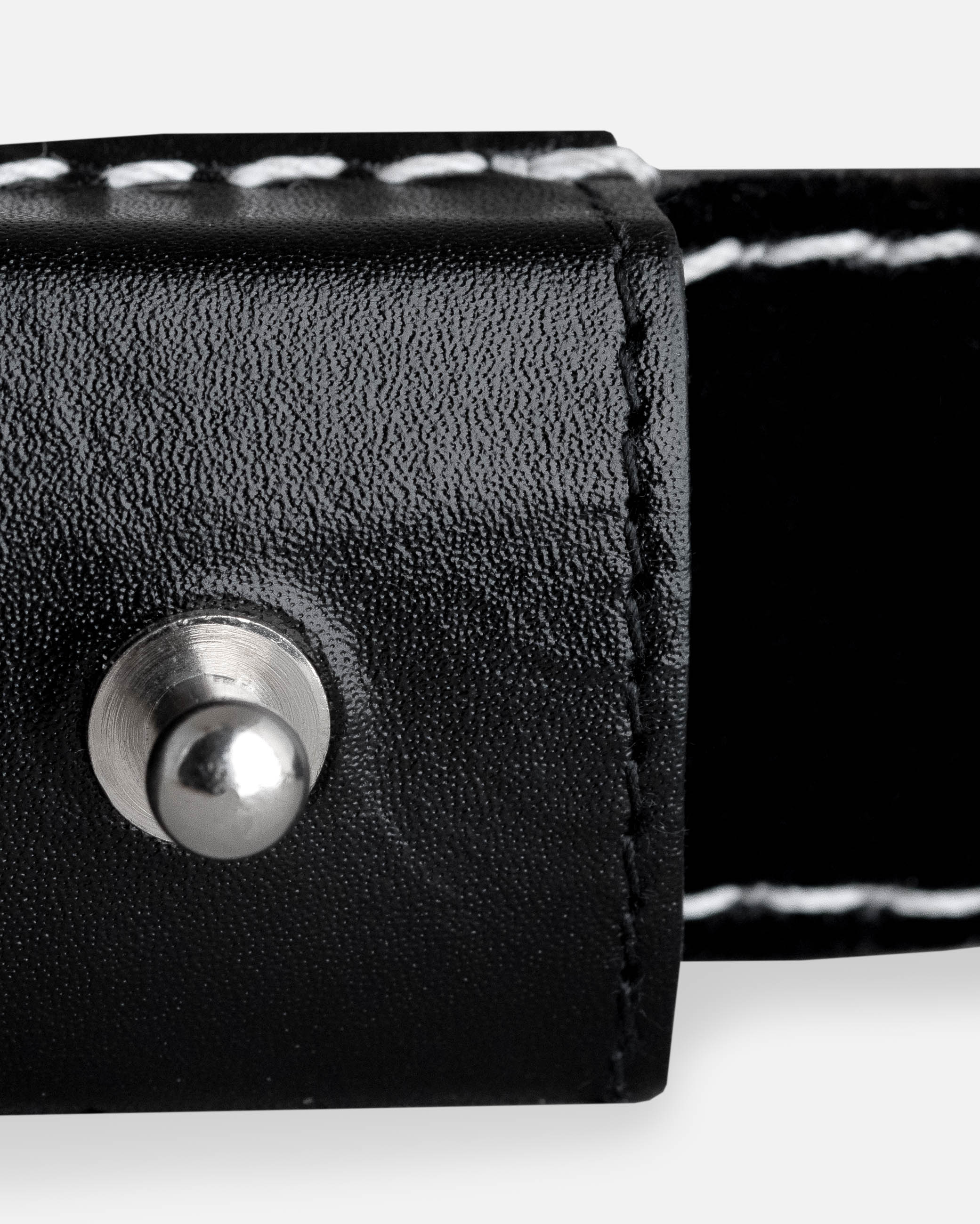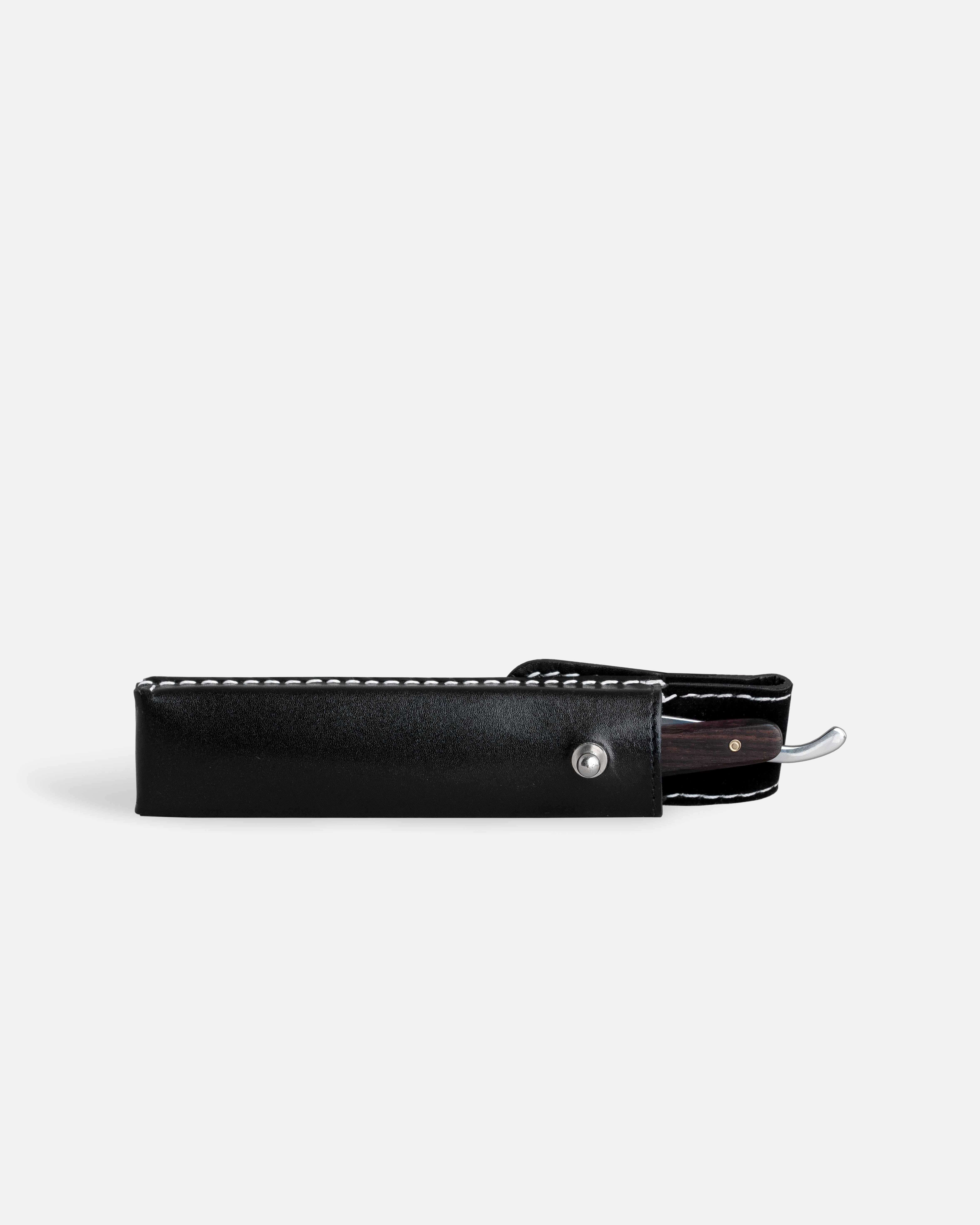G&F Timor® Etui für 1 Rasiermesser, glattes schwarzes Leder mit weißer Naht