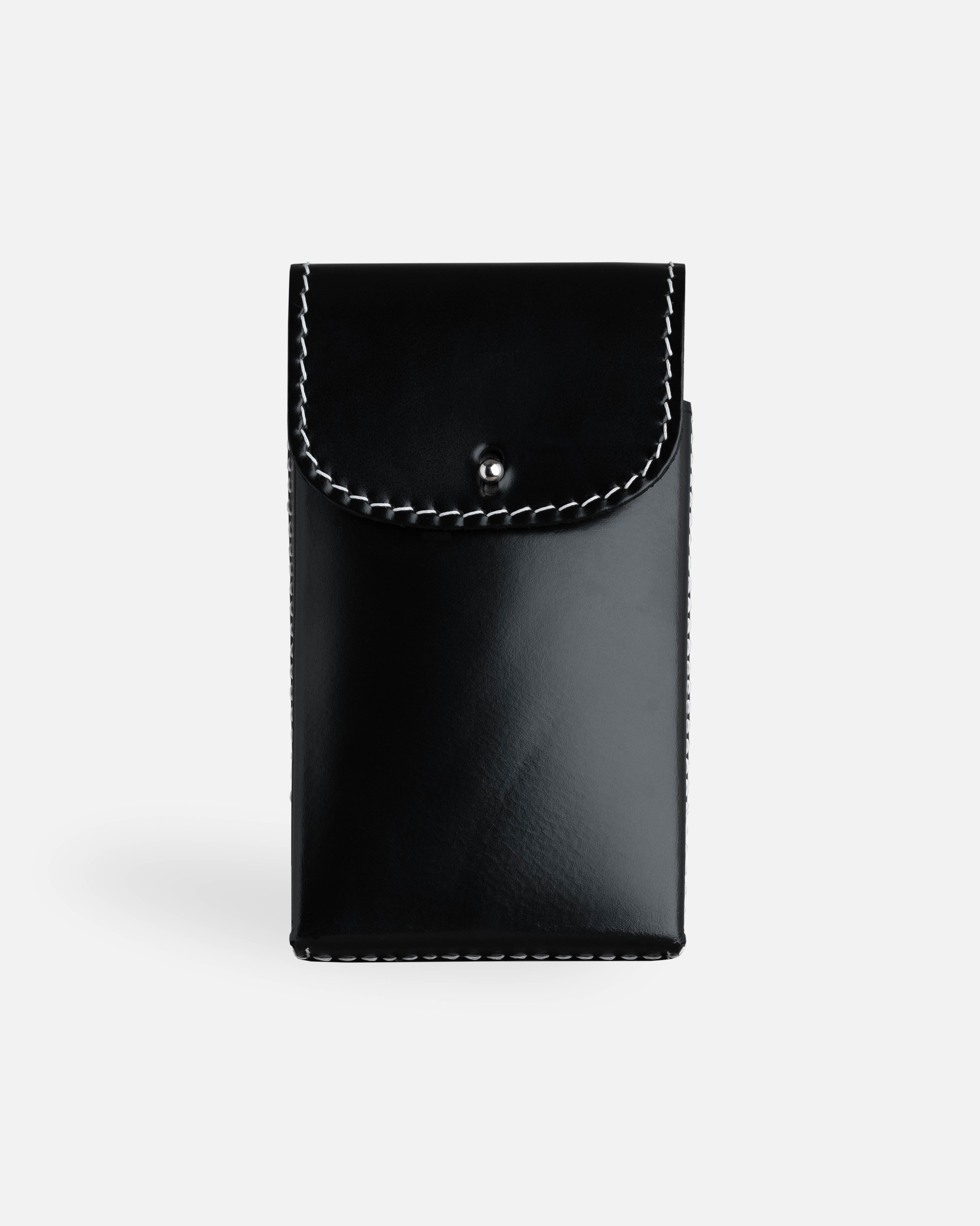 G&F Timor® Etui für 3 Rasiermesser, glattes schwarzes Leder mit weißer Naht