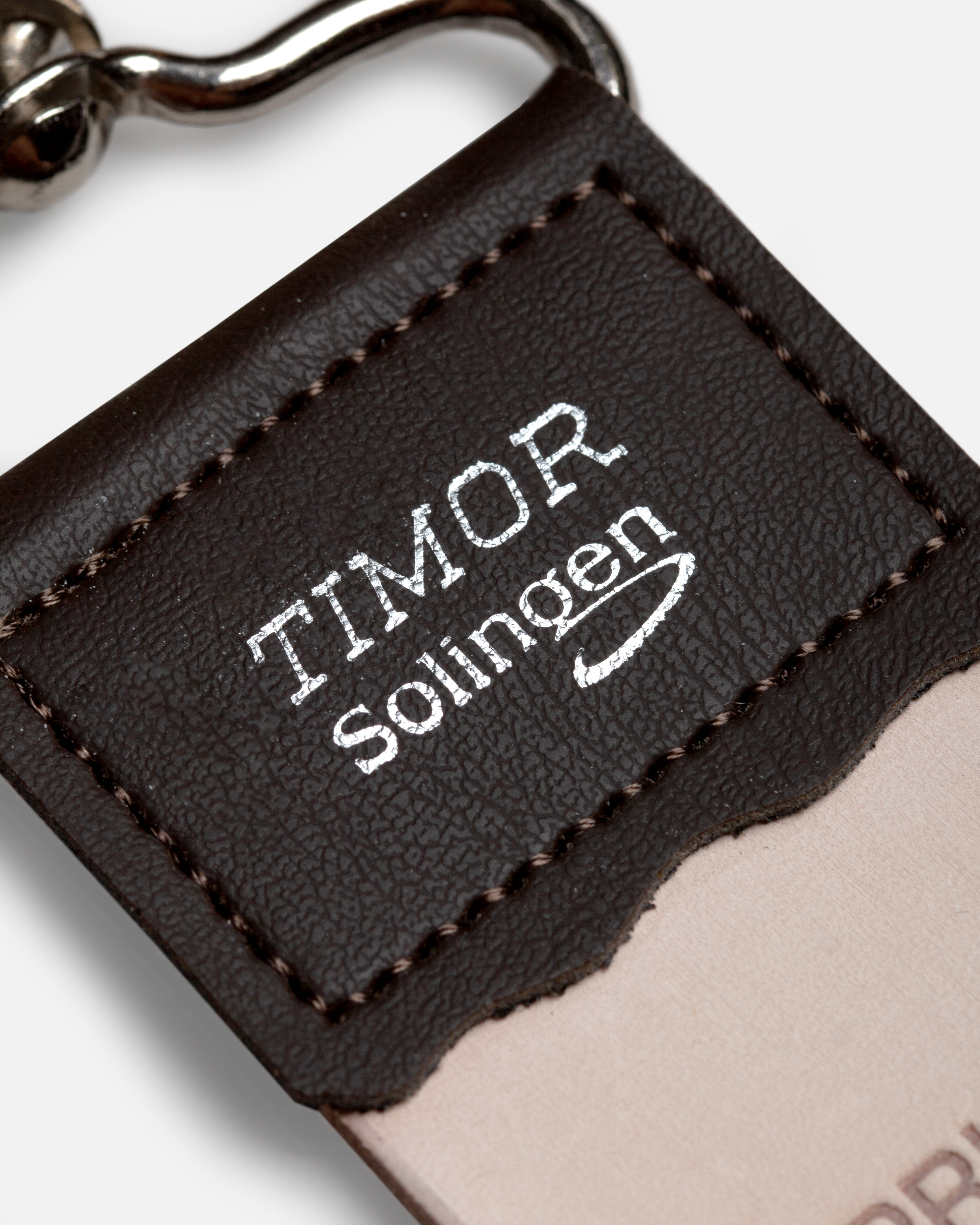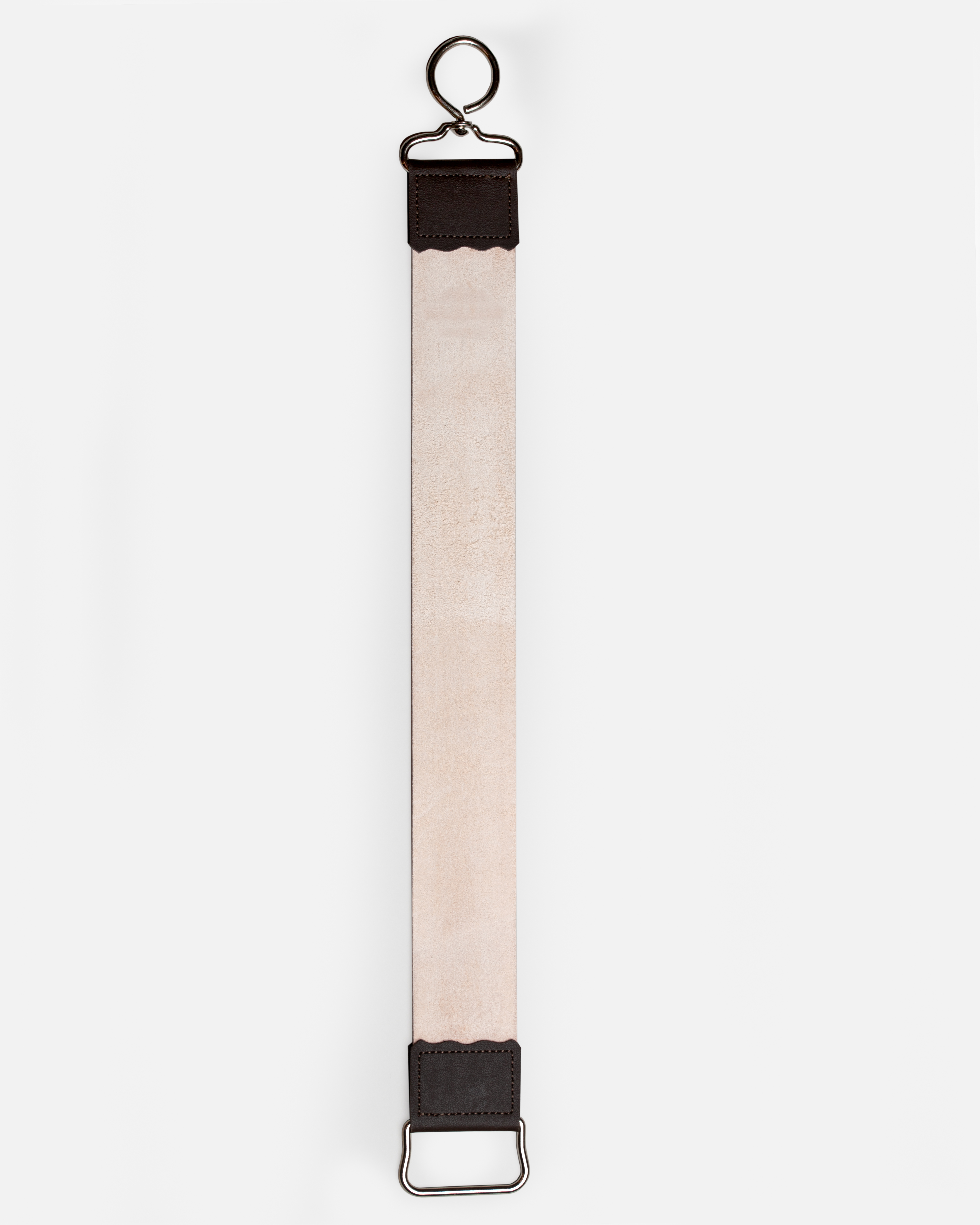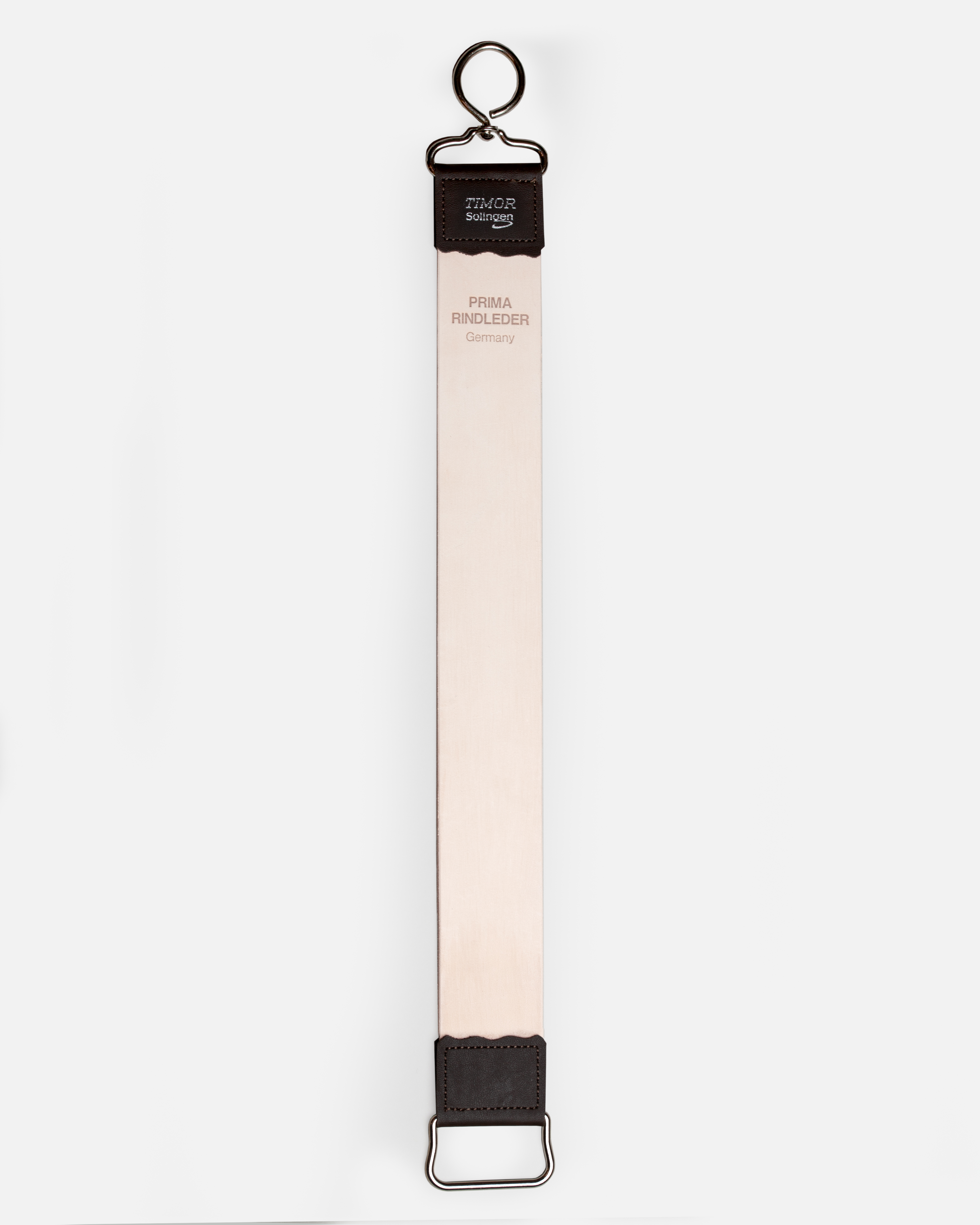 G&F Timor® Hängeriemen aus echtem Rindleder, mit Haltegriff aus Metall. Gesamtlänge ca. 490 mm, Breite ca. 45 mm, lose verpackt, zum Nachschärfen von Rasiermessern aus Carbon- oder rostfreiem Stahl.